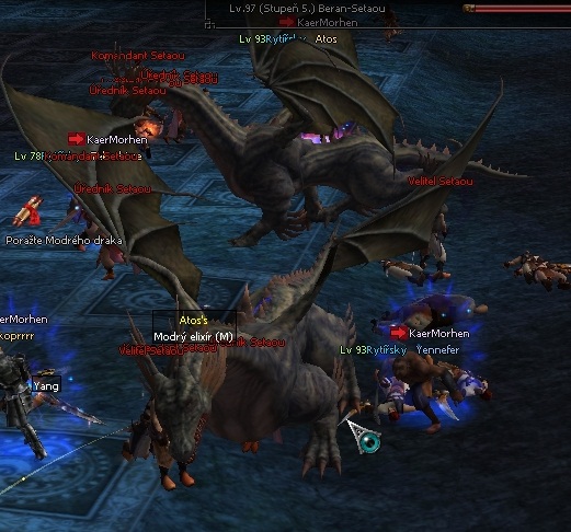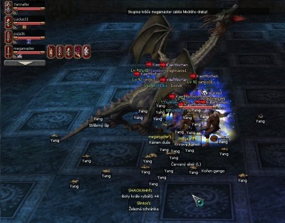 Dráček nás pěkně trápí. Po prvním úspěšném pokusu, kdy jsme ho doslova umlátili čepicemi se nám nějak přestalo dařit. Členové cechu marodí, pracují, vegetí, nechodí na draka, případně umírají jen se na ně dráček podívá a hordy červených setatou se nám smějí do očí. Během jednoho pěkného runu se nám vysmál i sám dráček, když si na pomoc povolal neotravitelnou partnerku strašlivou dračici beran-setatou a společně nás zcela zdecimovali :)